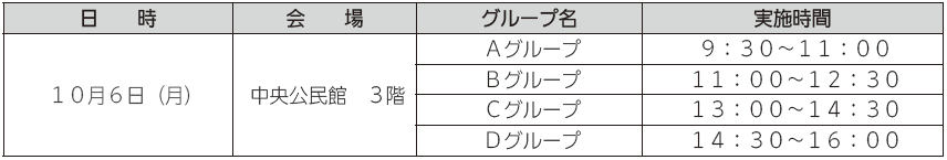日時:9月9日~11月18日毎週火曜日(10:00~11:30)全10回