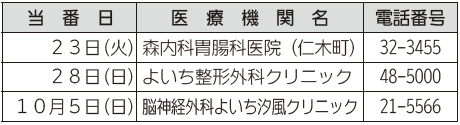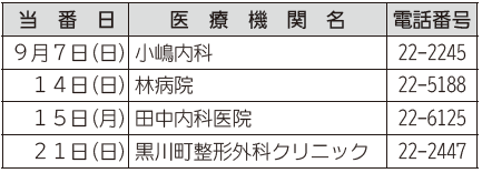※休日当番医は変更になることがありますので、確認してから受診してください。