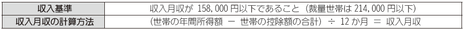 (5)定められた収入基準であること。※下部、「入居可能収入」参照