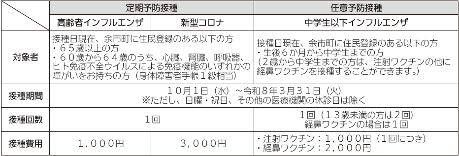 ・上記医療機関以外で接種した場合、接種期間以外で接種した場合は全額自己負担となりますのでご注意ください。