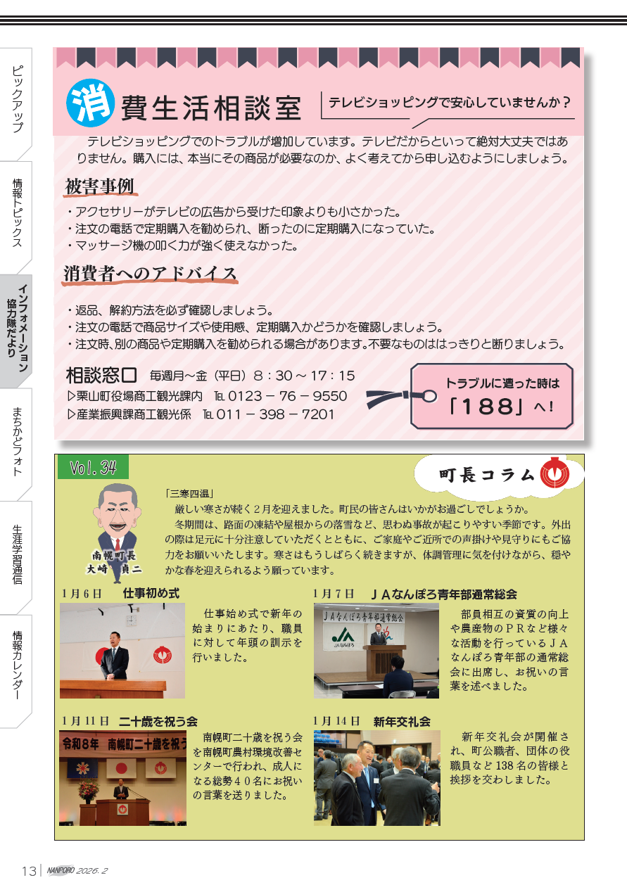 くらし 広報なんぽろ 令和8年2月号 P.13 12/21 前の記事 次の記事 発行日 : 2026年02月01日 自治体名 : 北海道南幌町 広報紙名 : 広報なんぽろ 令和8年2月号 Tweet シェアする 広報なんぽろ 令和8年2月号 P.12 広報なんぽろ 令和8年2月号 P.14