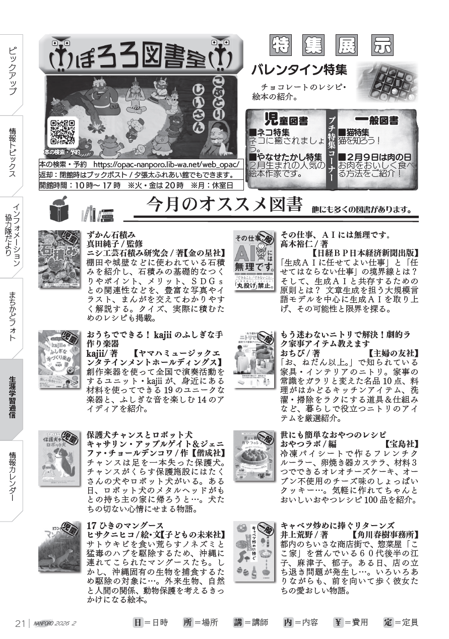 文化 広報なんぽろ 令和8年2月号 P.21 19/21 前の記事 次の記事 発行日 : 2026年02月01日 自治体名 : 北海道南幌町 広報紙名 : 広報なんぽろ 令和8年2月号 Tweet シェアする 広報なんぽろ 令和8年2月号 P.20 広報なんぽろ 令和8年2月号 P.22-23