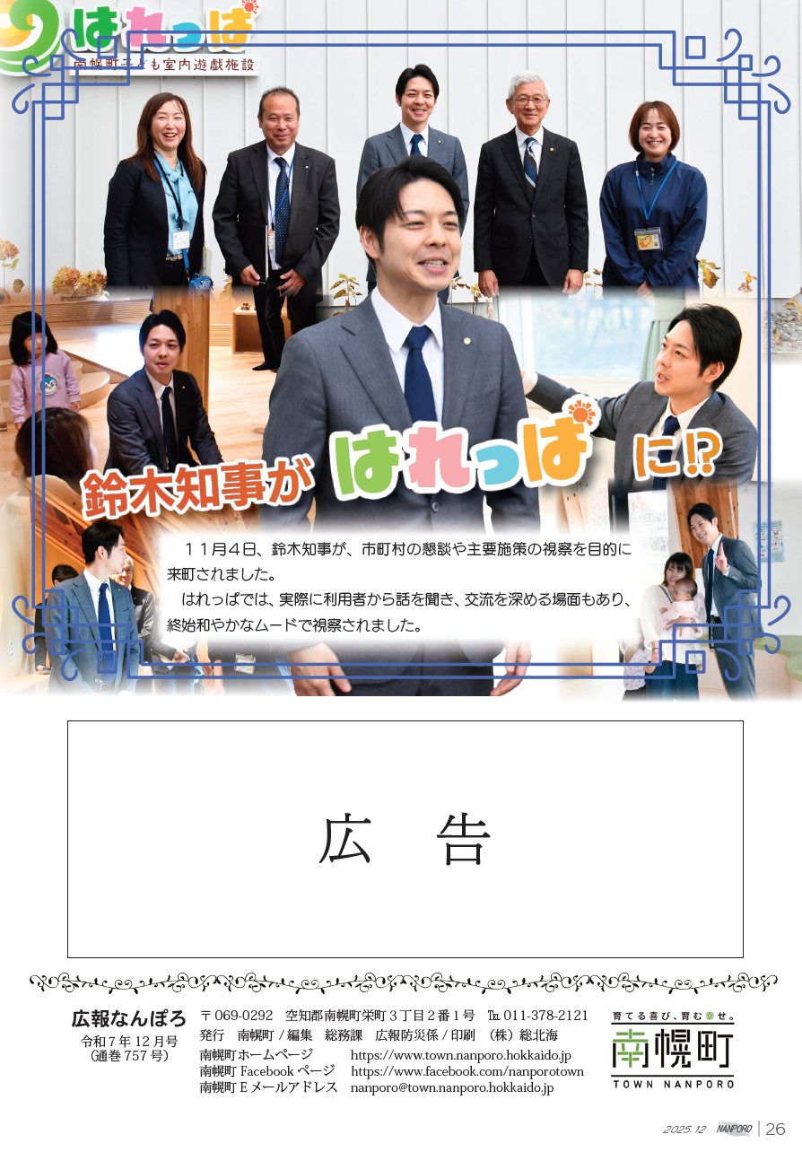 その他 広報なんぽろ 令和7年12月号 裏表紙 23/23 前の記事 発行日 : 2025年12月01日 自治体名 : 北海道南幌町 広報紙名 : 広報なんぽろ 令和7年12月号 Tweet シェアする 広報なんぽろ 令和7年12月号 P.24-25