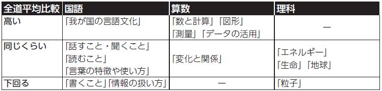 理科:「粒子」に関する領域が苦手ではありますが、全般的にみると全国平均より高くなっています。