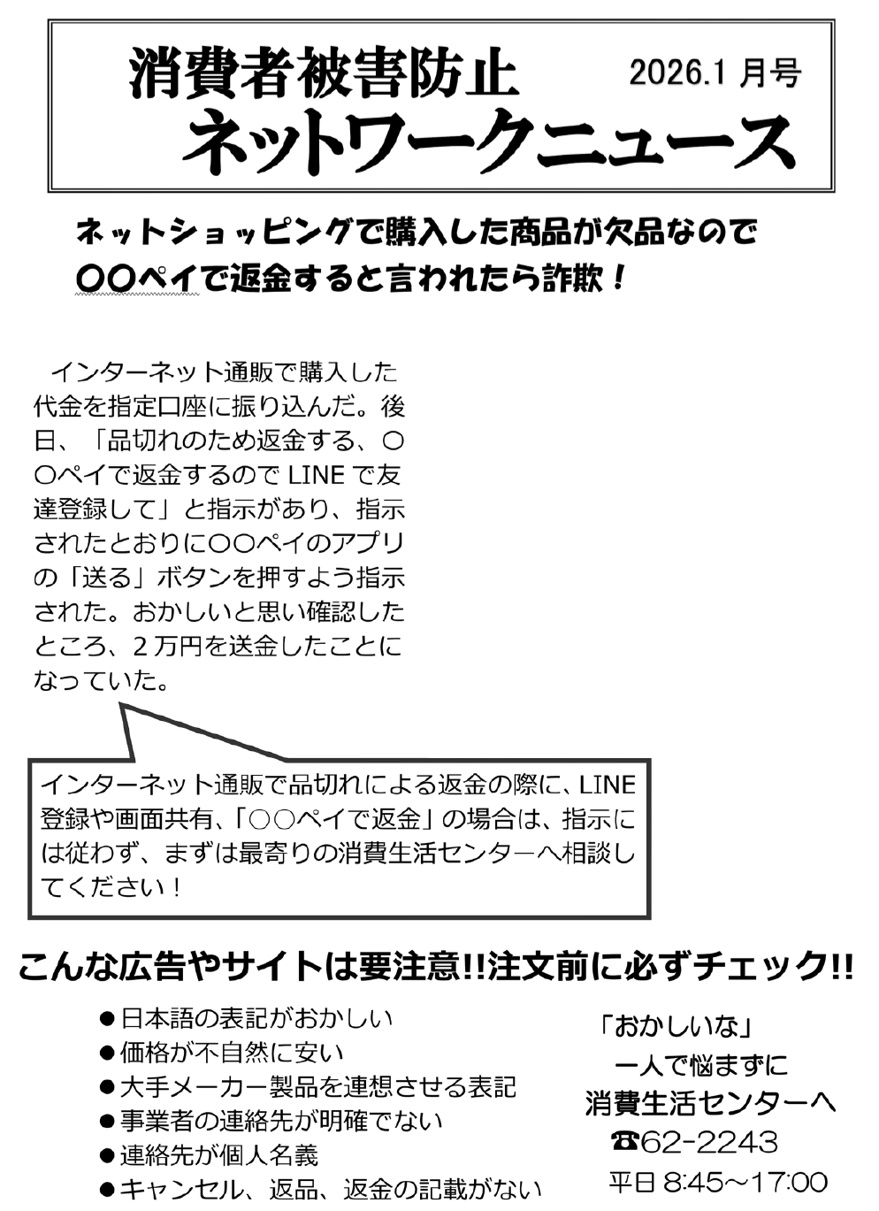 くらし 消費者被害防止ネットワークニュース 28/40 前の記事 次の記事 発行日 : 2026年01月01日 自治体名 : 北海道上砂川町 広報紙名 : 広報かみすながわ 2026年1月号 Tweet シェアする 屋根の雪下ろしには細心の注意を ゼロカーボンチャレンジ!
