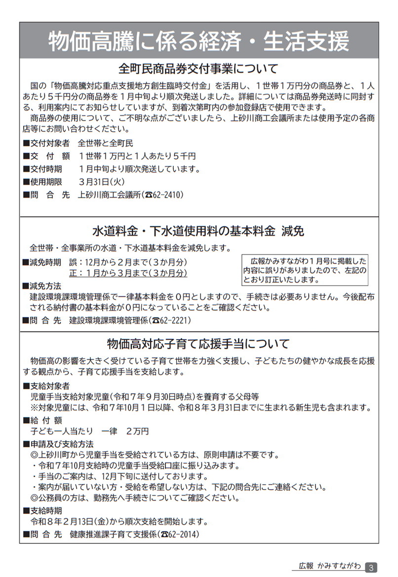 くらし 広報かみすながわ 2026年2月号 P.3 3/22 前の記事 次の記事 発行日 : 2026年02月01日 自治体名 : 北海道上砂川町 広報紙名 : 広報かみすながわ 2026年2月号 Tweet シェアする 広報かみすながわ 2026年2月号 P.2 広報かみすながわ 2026年2月号 P.4