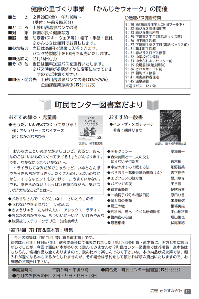 くらし 広報かみすながわ 2026年2月号 P.11 11/22 前の記事 次の記事 発行日 : 2026年02月01日 自治体名 : 北海道上砂川町 広報紙名 : 広報かみすながわ 2026年2月号 Tweet シェアする 広報かみすながわ 2026年2月号 P.10 広報かみすながわ 2026年2月号 P.12