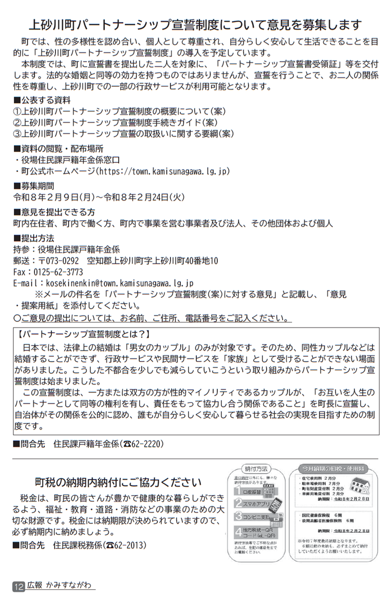 くらし 広報かみすながわ 2026年2月号 P.12 12/22 前の記事 次の記事 発行日 : 2026年02月01日 自治体名 : 北海道上砂川町 広報紙名 : 広報かみすながわ 2026年2月号 Tweet シェアする 広報かみすながわ 2026年2月号 P.11 広報かみすながわ 2026年2月号 P.13