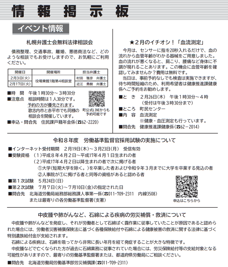 くらし 広報かみすながわ 2026年2月号 P.15 15/22 前の記事 次の記事 発行日 : 2026年02月01日 自治体名 : 北海道上砂川町 広報紙名 : 広報かみすながわ 2026年2月号 Tweet シェアする 広報かみすながわ 2026年2月号 P.14 広報かみすながわ 2026年2月号 P.16