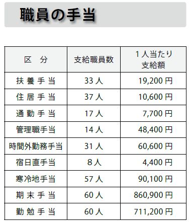 ※職員手当は、扶養手当、寒冷地手当、通勤手当、宿日直手当、管理職手当、特殊勤務手当、住居手当、管理職員特別勤務手当、時間外勤務手当、児童手当の合算額で退職手当は含みません。