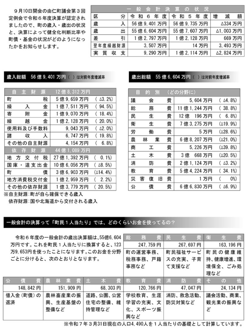 くらし 令和6年度決算のあらまし(1) 2/24 前の記事 次の記事 発行日 : 2025年11月01日 自治体名 : 北海道由仁町 広報紙名 : 広報ゆに 2025年11月号 Tweet シェアする 表紙 令和6年度決算のあらまし(2)