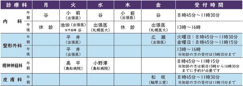 ・担当医師が都合により急遽変更になる場合があります。