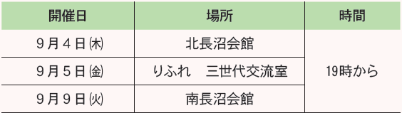 ※日程が変更になる場合は、広報無線などでお知らせします。