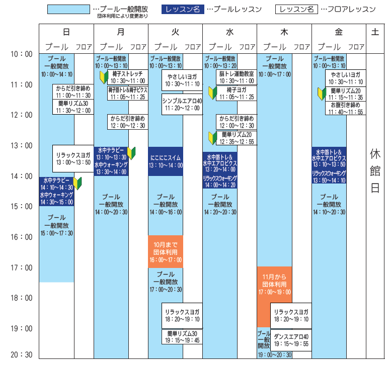 ・水中ウォーキング(30分) 日曜日14:30~15:00・月曜日13:30~14:00
