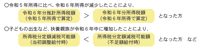 昨年度実施した「定額減税調整給付金(当初調整給付)」の支給額に不足が生じた方に対して、追加で給付を行います。