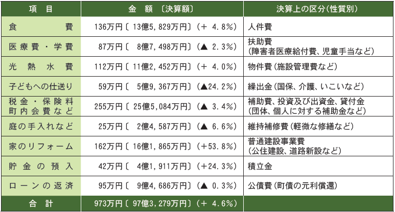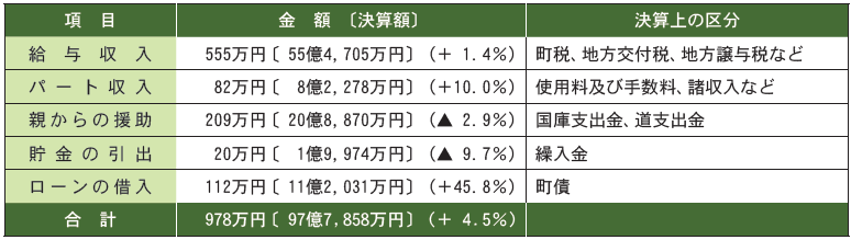 町の一般会計の決算を、家庭の収入・支出に例えて作成しました。町の財政と家庭では内容が違うため単純な比較はできませんが、身近な項目に置き換えていますので参考としてご覧ください。