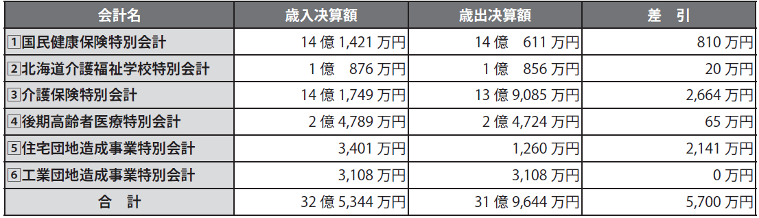 特別会計は特定の事業目的のために一般会計と区分した会計で、町には6つの特別会計があります。