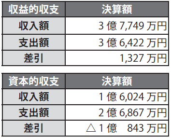 浄水場の設備更新や配水管の整備などの経費(資本的収支)では約1億843万円の不足となりました。