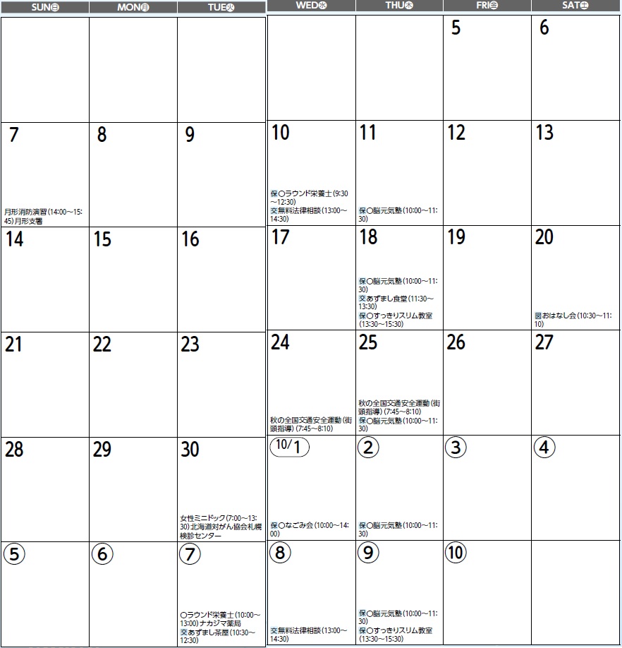9月30日(火)7:00~13:30 北海道対がん協会札幌検診センター
