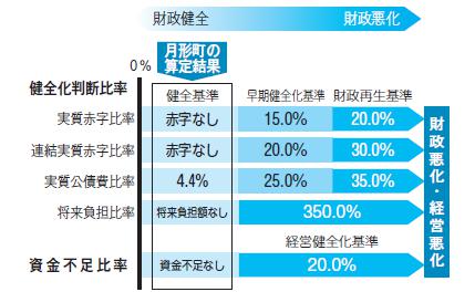 財政の健全化判断比率と資金不足比率とは、地方公共団体の財政破たんを未然に防ぐために設けられた指標で、町の会計のほか、町立病院や下水道などの公営企業を含めた、町全体の財政状況を明確にしたものです。