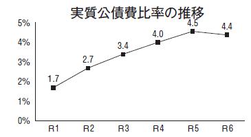 令和6年度の月形町の実質公債費比率は4.4%で、早期健全化基準の25.0%を大きく下回っており、財政規模に占める公債費の割合が堅実に維持されています。