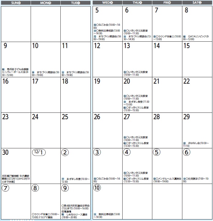 11月11日(火)、11月18日(火)、11月25日(火)、12月2日(火)、12月9日(火)