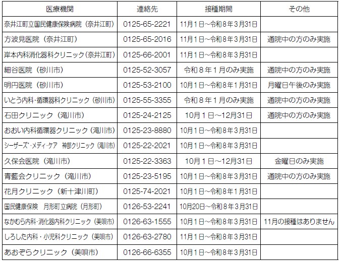 ・令和7年10月3日現在の情報です。今後医療機関や接種期間等に変更があった場合は、ホームページな どでお知らせします。