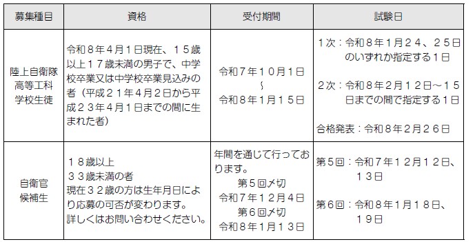 詳しくは、自衛隊札幌地方協力本部滝川地域事務所までお問い合せください。