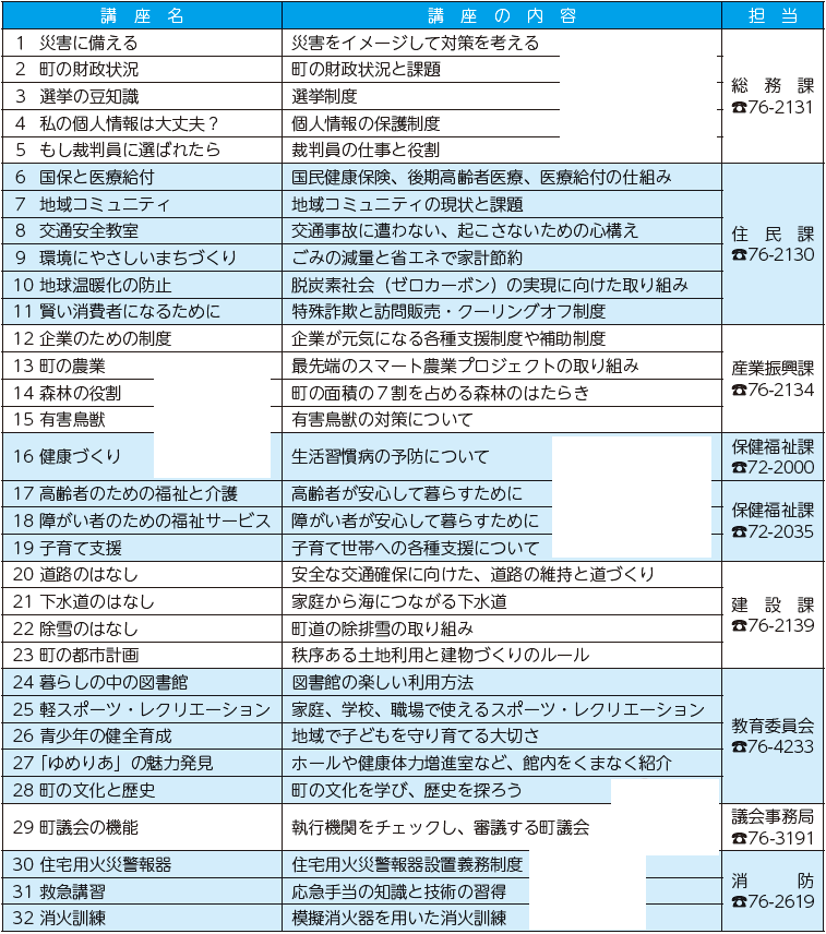 町では、町民の皆さんと一緒にまちづくりを進めるため、出前講座を開催しています。