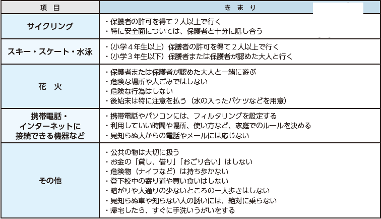 子どもたちが安全で健やかに成長することを願う、生活のきまりです。
