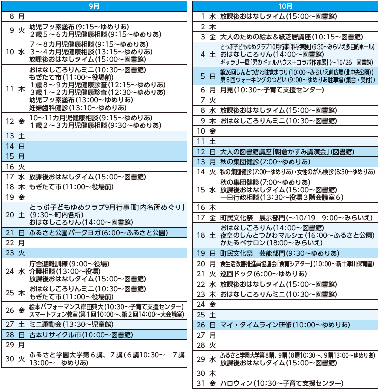くらし イベントカレンダー(9月8日~10月31日) 19/21 前の記事 次の記事 発行日 : 2025年09月15日 自治体名 : 北海道新十津川町 広報紙名 : 広報しんとつかわ 令和7年9月号 Tweet シェアする 図書館ナビ まちのわだい