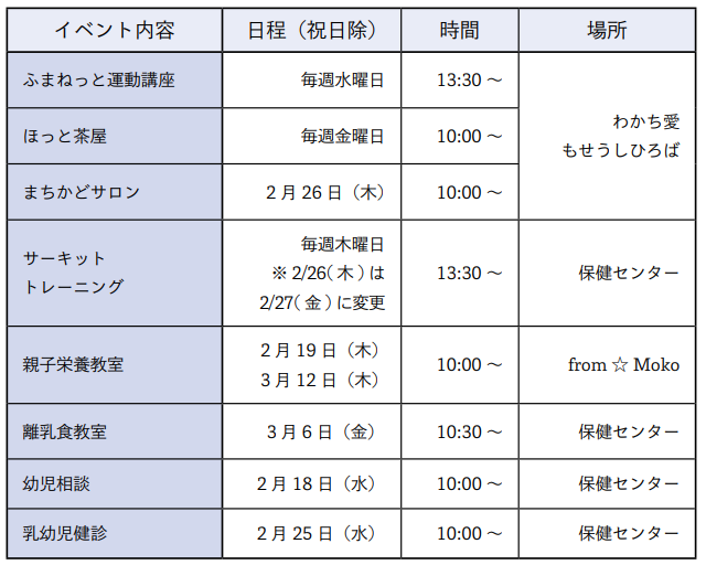 くらし information インフォメーション 12/15 前の記事 次の記事 発行日 : 2026年01月30日 自治体名 : 北海道妹背牛町 広報紙名 : 広報もせうし 令和8年2月号 vol.783 ■イベント情報 2/15~3/14 ■妹背牛診療所 【電話】32-2475 休診日…第1・3・5土曜日、日・祝日 午後休診…第2・4水曜日と土曜日 2/16リハビリ休み 2/20、3/9送迎休み ■当番医院 Tweet シェアする けんこうだより まちのデータ