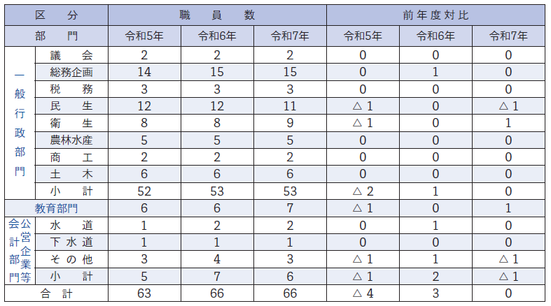 (8)部門別職員数の状況(各年4月1日)※再任用短時間職員を除く