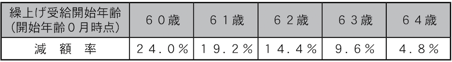 ・減額率=0.4%×繰上げ請求月から65歳になる月の前月までの月数