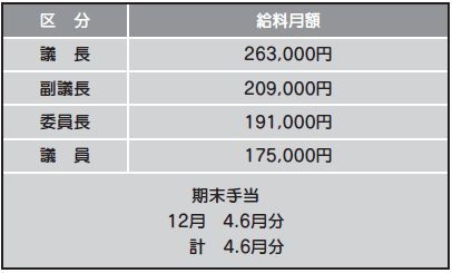 町議会議員の報酬は令和7年4月1日現在、次のとおりです。