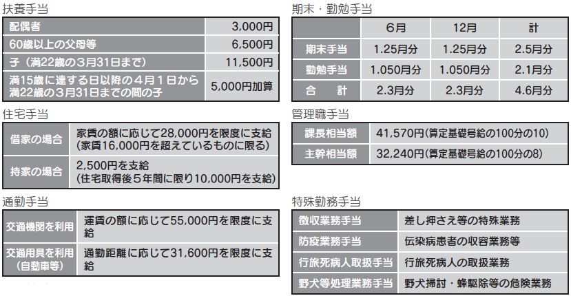 職員には給料のほかに一定の条件を満たす場合、次の手当が支給されます。(令和7年4月1日現在)