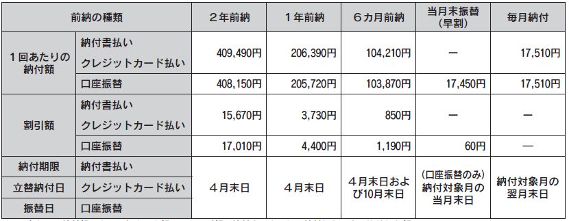 ・振替方法に前納(6カ月前納、1年前納、2年前納)を選択する場合は、年度の途中からでも口座振替によるまとめ払い(前納)が可能です。