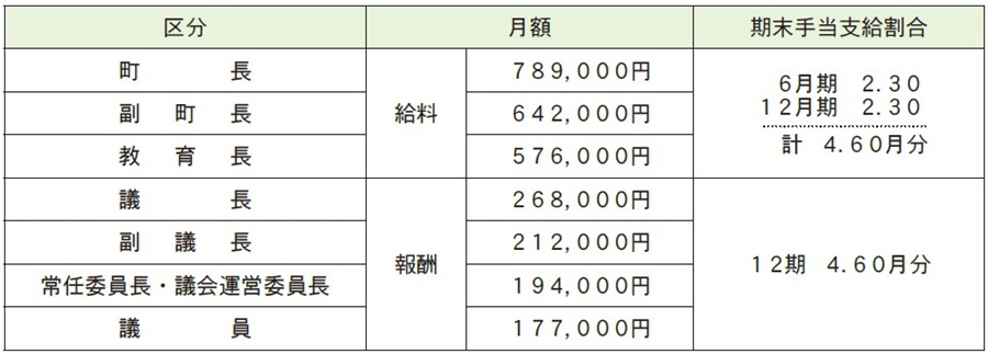 職員や特別職(町長/副町長/議員/各種委員等)に支給される給料/報酬/共済費です。