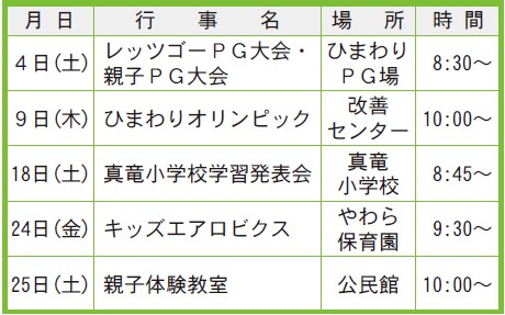 ・親子体験教室…10/25