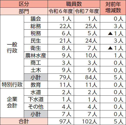 ▽職員数(令和7年定員管理調査より、各年4月1日現在)