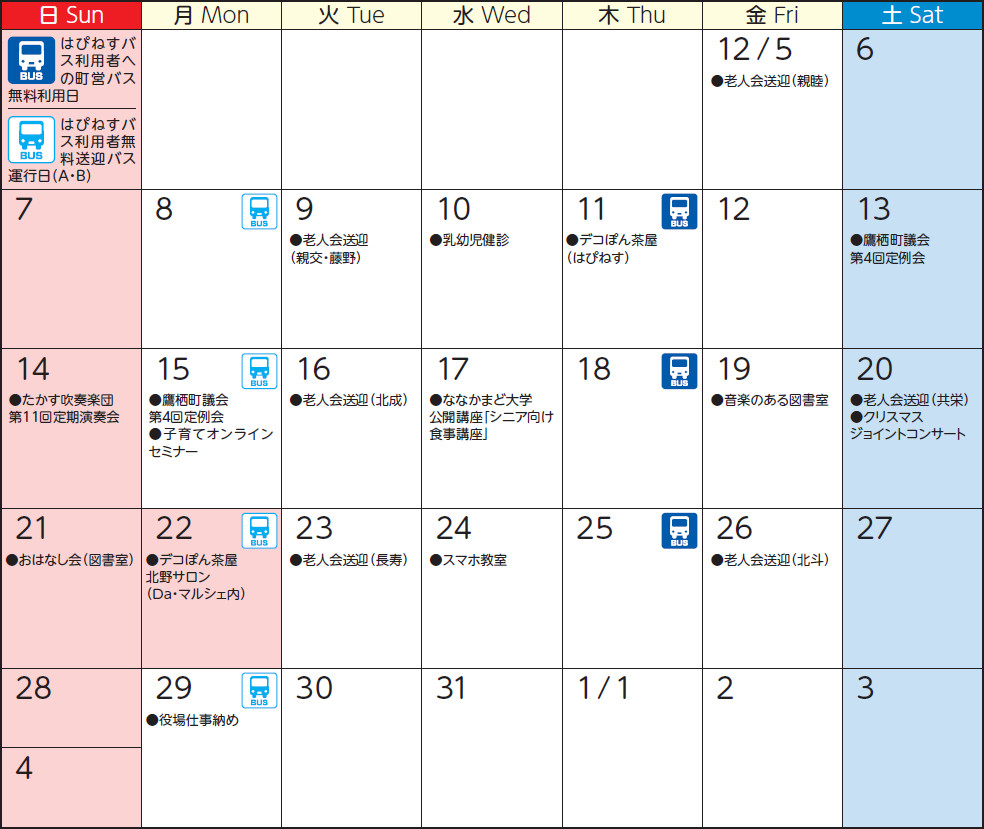 くらし R.7 12月 カレンダー 20/22 前の記事 次の記事 発行日 : 2025年12月05日 自治体名 : 北海道鷹栖町 広報紙名 : 広報たかす 令和7年12月号 ◎郷土資料館開館日(毎週水・土曜日/10:00~16:00) Tweet シェアする お知らせかわら版 人口と世帯数・救急出動状況