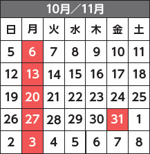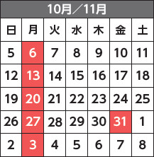 ■10月の月末整理日は31日(金)です