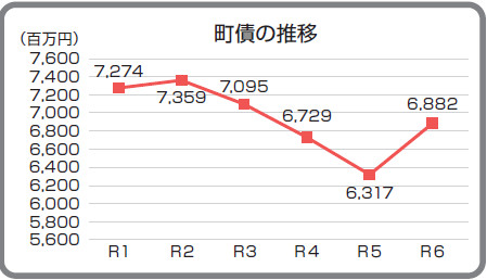 令和6年度末の町債残高は約68億8,200万円。