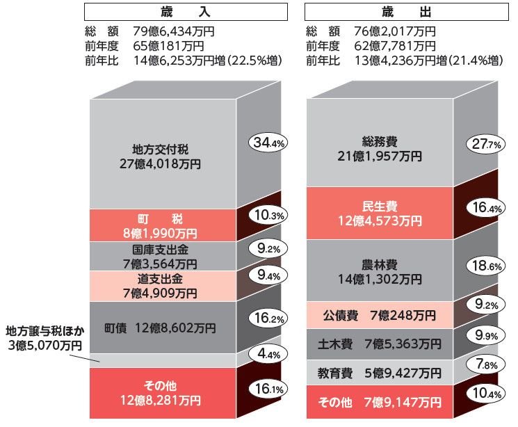 町民1人当たりの借金:106.5万円(前年度対比+10.6万円)