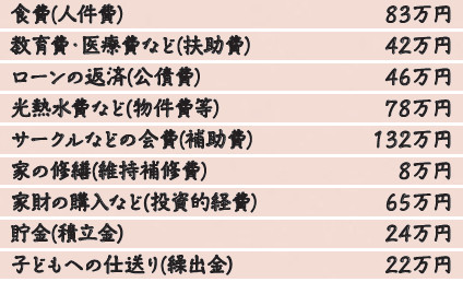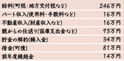 町の1年間の収支(一般会計決算額)を年間の収支が500万円の家計に例えてみます。