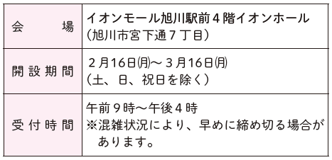 ◆イオンモール旭川駅前確定申告会場のお知らせ