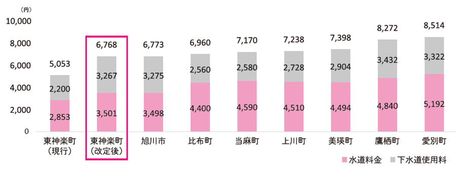 ◆近隣市町との上下水道料金比較(20立方メートル使用の場合)