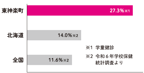 乳幼児期からの生活習慣は大人になっても影響すると言われています。東神楽町ではこれまで、3歳児健診から学童健診(小5)までの間に生活習慣を見直す機会が少なく、気づかないうちに肥満傾向が進んでしまうお子さんが増えて来ました。そのため、5歳児健診は生活習慣を振り返り、早めに整えるきっかけとすることも目的としています。