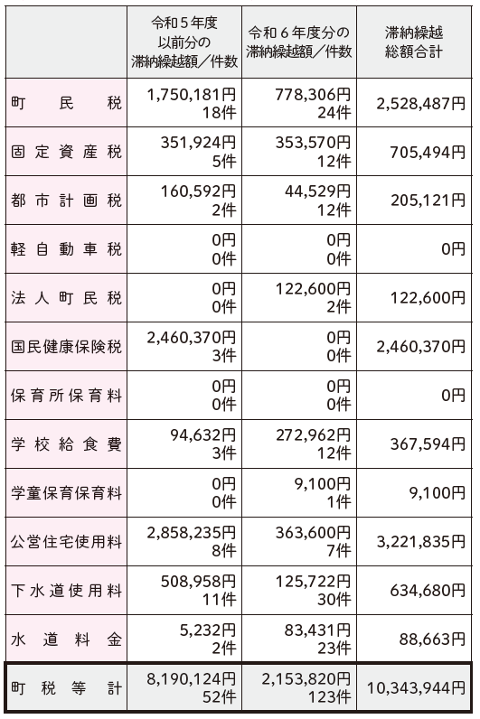 町では、租税負担などの公平性を保つため町税など滞納処分や給水停止、公営住宅の明け渡し請求などを強化しています。