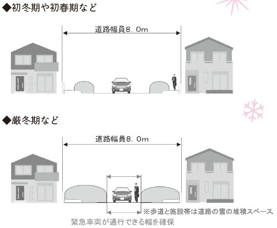 ・玄関前や車庫前の除雪はご家庭でお願いします。